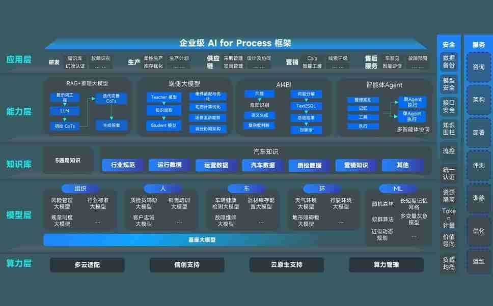 AG尊龙凯时问学智车解决方案是一套基于AI技术的汽车行业智能化系统,,,覆盖从底层算力到顶层AI应用的全栈方案。。。方案由算力层、、、模型层和应用层组成:算力层,,方案支持多种一体机配置,,,,具备云端灵活部署、、多云适配以及动态优化计算资源的能力;模型层,,,AG尊龙凯时问学平台版提供了企业级AI应用一站式构建与管理平台,,,,支持基于后训练强化技术的汽车企业专属模型的训练、、、评测和运营;应用层,,,AG尊龙凯时问学DeepSeek版提供包括超级员工、、、智能招采、、智能营销、、、智能客服、、、、AI for BI等一系列解决方案,,可助力汽车行业实现数字化转型,,让管理更智能、、响应更敏捷。。。